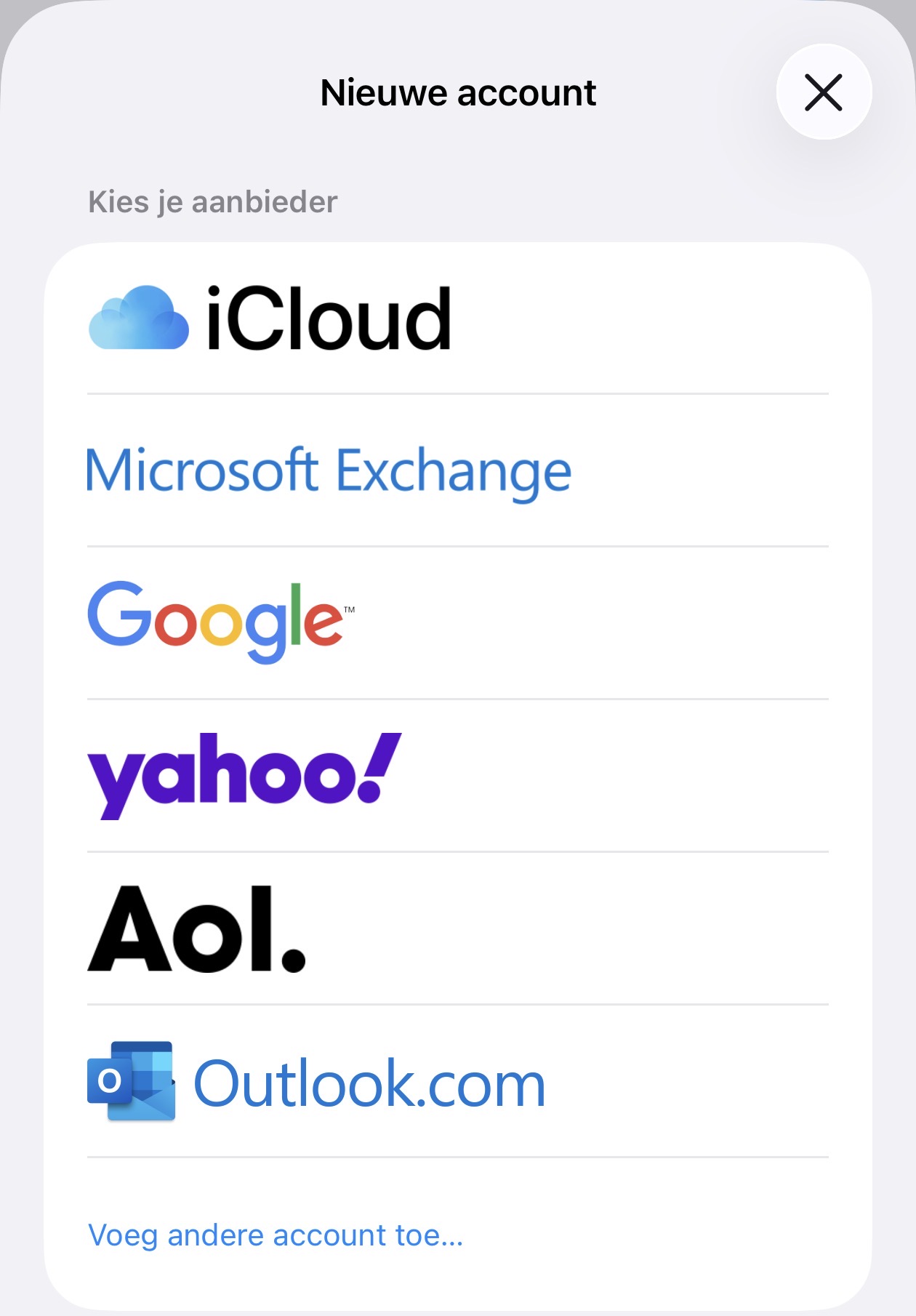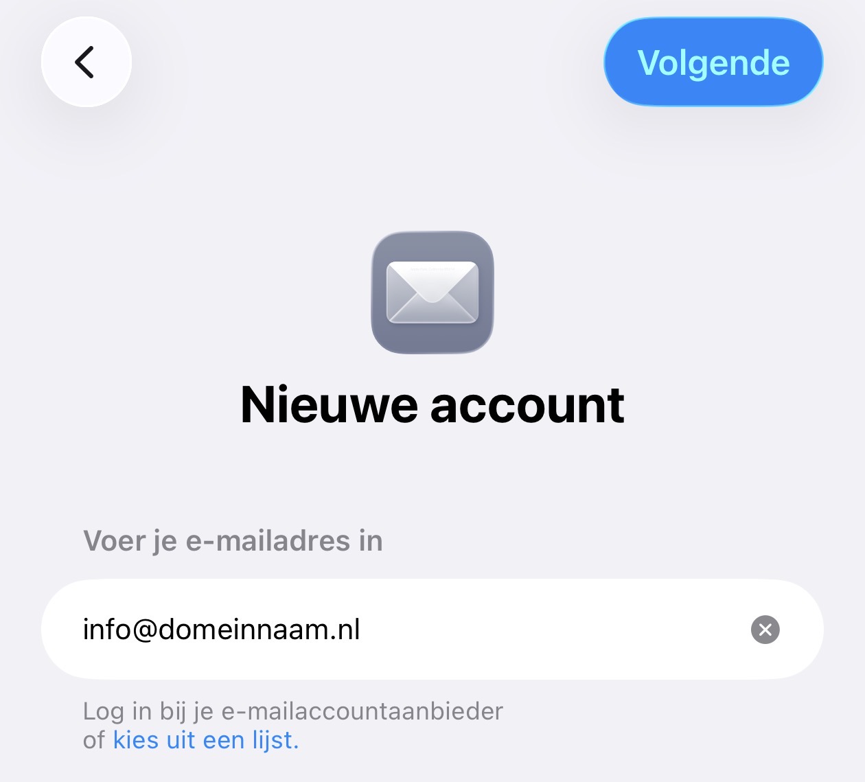 - Tik op Nieuwe account om een nieuw mailaccount toe te voegen
