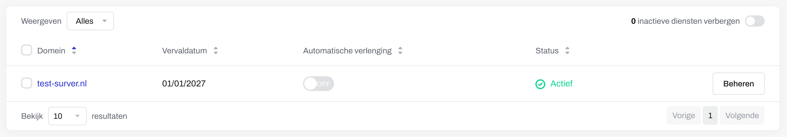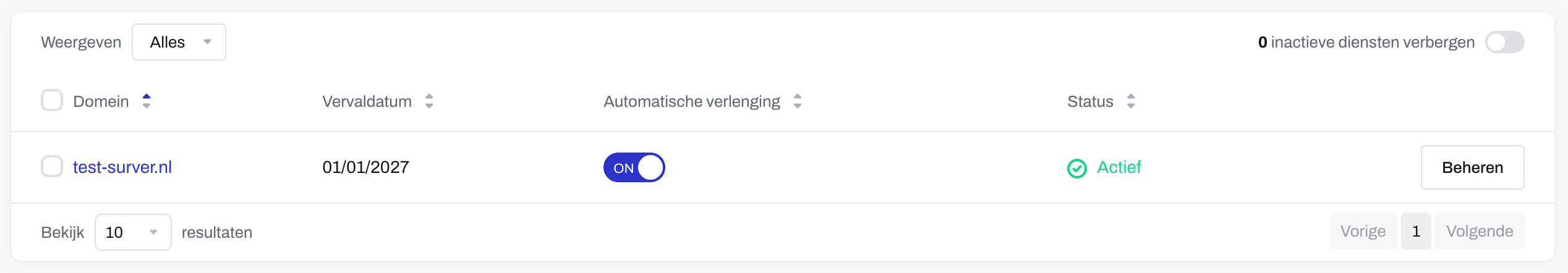 - Staat de verlenging uit, dan loopt het domein af op de vervaldatum