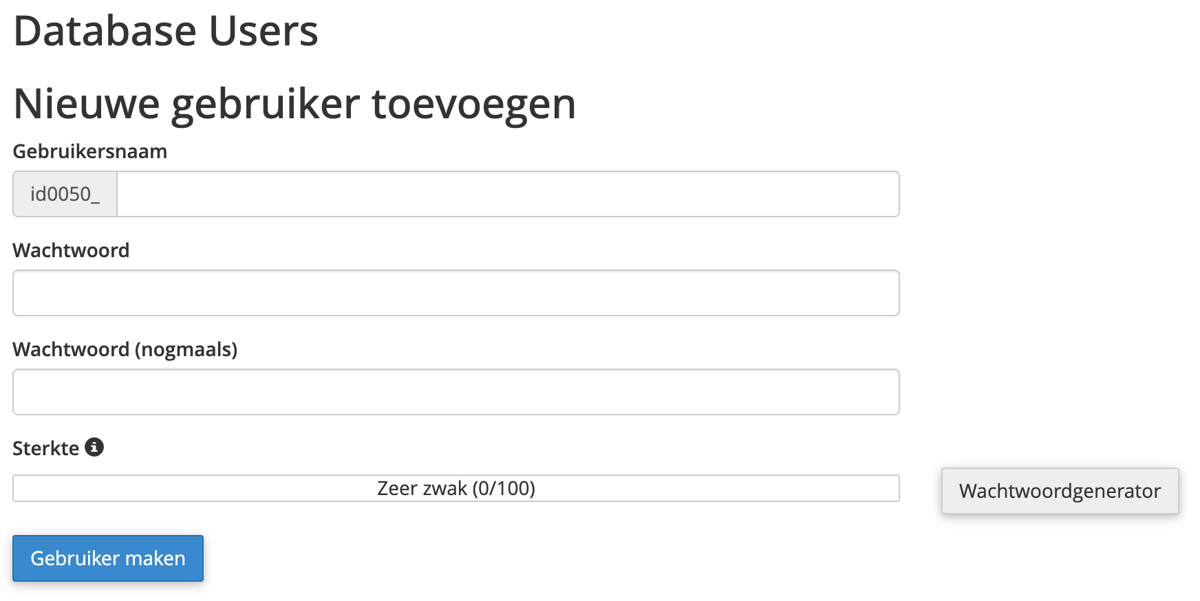 Databasegebruiker aanmaken